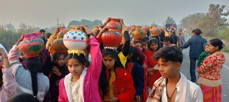 जयकारों से गूंजा क्षेत्र, बड़ी नहर से भरा गया जल कलश यात्रा मंदिर परिसर से प्रारंभ होकर रामपुर मोड़, तिवारी टोला, धनगड़ा और धरमौली उत्तर टोला होते हुए बड़ी नहर पहुंची। यहाँ विद्वान ब्राह्मणों द्वारा विधि-विधान से पूजन के पश्चात कलशों में पवित्र जल भरा गया। यात्रा में सैकड़ों महिलाएं पारंपरिक परिधान में सिर पर कलश धारण कर चल रही थीं, वहीं युवा और पुरुष श्रद्धालु डीजे की धुन और माता के जयकारों पर झूमते नजर आए।