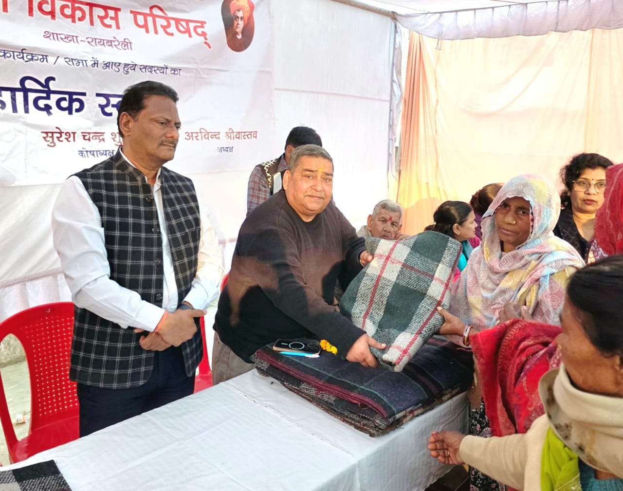 कड़ाके की ठंड से बचाव के उद्देश्य से भारत विकास परिषद, शाखा रायबरेली द्वारा रायबरेली शहर के अहियापुर निर्धन बस्ती में कंबल वितरण का आयोजन किया गया। कार्यक्रम के अंतर्गत परिषद की ओर से 228 जरूरतमंदों को कंबल प्रदान किए गए। इस अवसर पर परिषद के अध्यक्ष अरविंद श्रीवास्तव ने कहा कि समाज के अंतिम व्यक्ति तक सेवा पहुंचाना ही परिषद का मूल उद्देश्य है। उन्होंने कहा कि जरूरतमंदों की सेवा से ही मानवीय संवेदनाएं जीवित रहती हैं और यही सच्ची समाजसेवा है। उन्होंने सभी से सामाजिक दायित्वों के निर्वहन में सक्रिय भागीदारी का आह्वान किया। कार्यक्रम का संचालन पूर्व अध्यक्ष राकेश कक्कड़ द्वारा किया गया। आयोजन को सफल बनाने में स्थानीय प्रतिनिधि अशोक श्रीवास्तव का विशेष योगदान रहा। कार्यक्रम में परिषद के प्रांतीय उपाध्यक्ष नवल किशोर बाजपेई, पूर्व अध्यक्ष उमेश अग्रवाल, कमलेश चंद्र श्रीवास्तव, राजा राम मौर्य, अजय कुमार मिश्रा, देवेंद्र कुमार श्रीवास्तव, पवन कुमार श्रीवास्तव, वाणी पाण्डेय, सीमा श्रीवास्तव एवं नीतू चतुर्वेदी उपस्थित रहे। सभी के सहयोग से कार्यक्रम सौहार्दपूर्ण वातावरण में सफलतापूर्वक संपन्न हुआ।