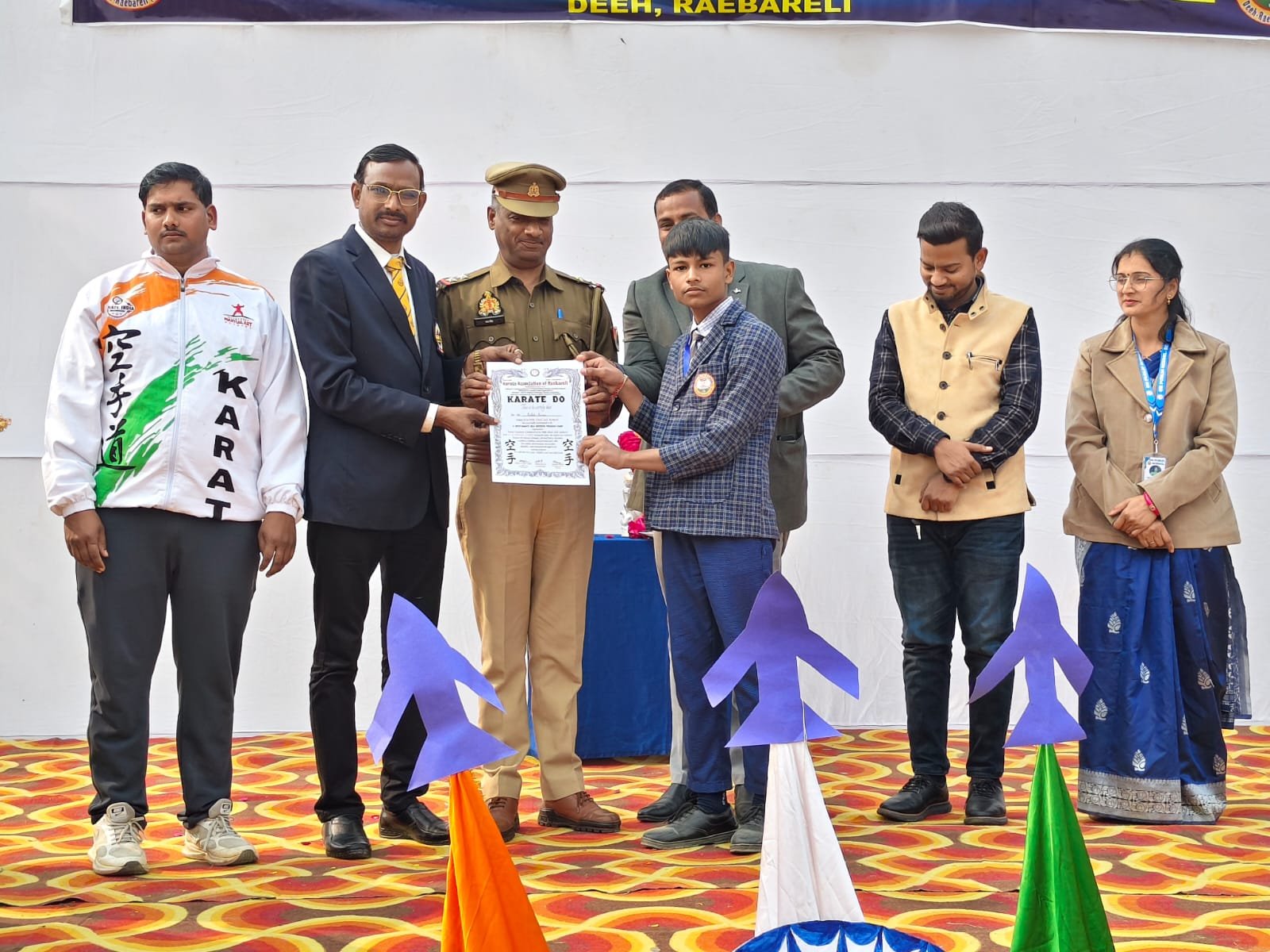 समापन समारोह में वरिष्ठ उप निरीक्षक मान सिंह मुख्य अतिथि के रूप मेें तो वहीं विशिष्ट अतिथि के रूप में कराटे मास्टर राकेश कुमार गुप्ता जिला कराटे संघ रायबरेली अध्यक्ष एवं मुख्य प्रशिक्षक रहे। इस अवसर पर थाना प्रभारी डीह श्री जितेंद्र मोहन सरोज ने कराटे कैंप में प्रतिभाग करने वाले सभी खिलाड़ियों को शुभकामनाएं देते हुए उनके उज्ज्वल भविष्य की कामना की। मुख्य अतिथि एवं विशिष्ट अतिथि द्वारा बच्चों को प्रमाण पत्र प्रदान कर सम्मानित किया गया तथा कराटे जैसी मार्शल आर्ट विधाओं को आत्मरक्षा के लिए अत्यंत आवश्यक बताया गया।