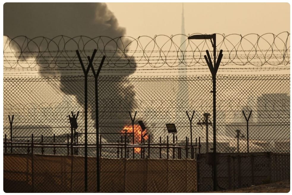दुबई अंतर्राष्ट्रीय हवाई अड्डे के पास एक ड्रोन हमले के कारण ईंधन टैंक में आग लग गई और उड़ान सेवाएं कुछ समय के लिए निलंबित कर दी गईं।